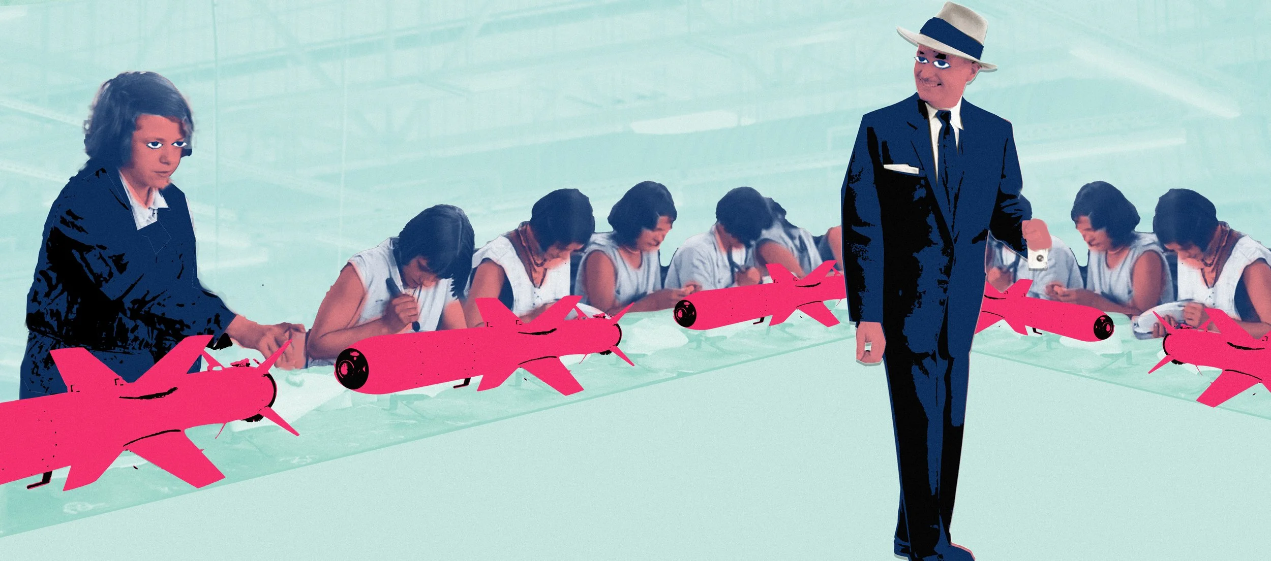 • Factory floor centred on one enormous bomb under industrial lighting.